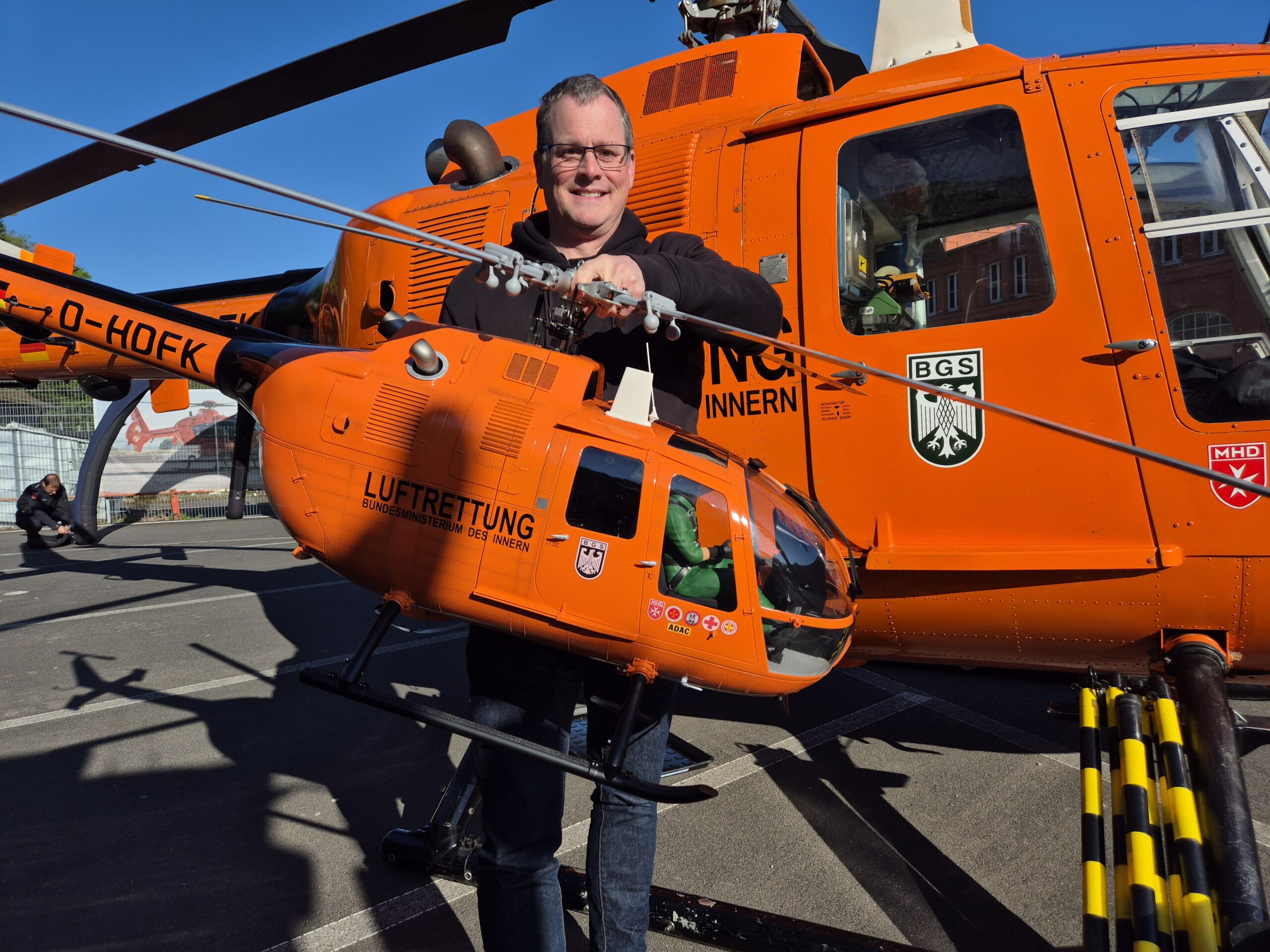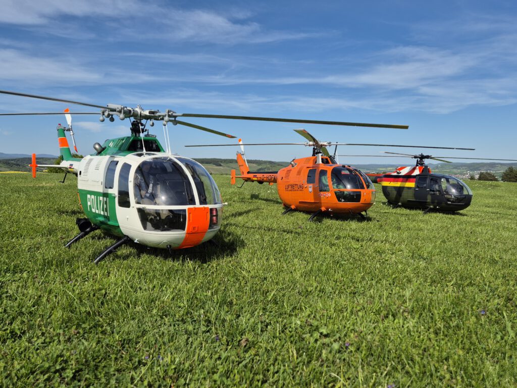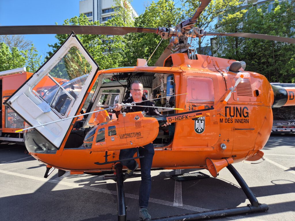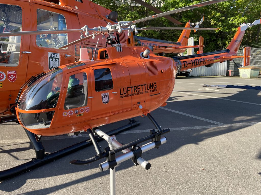 Am 26. April 2025 feierte der echte „Christoph 7“ in Kassel sein 50. Jubiläum. Die Original BO 105 CB „D-HDFK“ wurde hierfür auf der Festmeile an Kulturbahnhof in Kassel ausgestellt und das Modell durfte sich mit dazustellen.