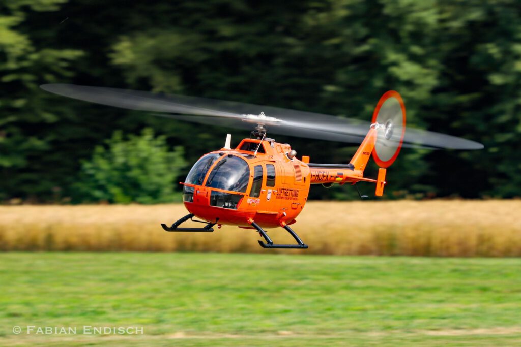 Mit den orangenen Rettungshubschraubern des Bundesministeriums des Inneren gab es schon immer eine emotionale Verbindung. So war die BO 105 CBS „Christoph 2“ an der Unfallklinik in Frankfurt der erste Hubschrauber, in dem Pitchbrother Tobias mal auf dem Pilotensitz Platz nehmen durfte. Glücklicherweise nur beim Besuch vor über 30 Jahren. Da stand der Hubschrauber noch auf dem Landeplatz vor der Klinik und nicht auf dem Dach. Auch mit dem „Christoph 14“ in Traunstein gibt es eine besondere Verbindung. Zum Zeitpunkt der Indienststellung (März 2007) der ersten beiden EC 135 T2i als Ersatz für die BO 105 CBS-5 durch das Bundesamt für Bevölkerungsschutz und Katastrophenhilfe (BKK) war Pitchbrother Tobias regelmäßig im Chiemgau im Urlaub. Natürlich wurde die Station der damals neuen „D-HZSH“ besucht und es konnten einige Außenlandungen live beobachtet werden.